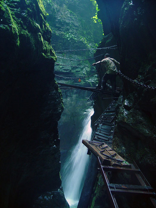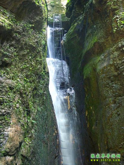 坐龍峽擁有中國第一條特種游道。所有游道均建于峽谷深處,依山取勢,既經(jīng)細心雕琢聽卻又渾然天成。粗樸的板栗木棧道,可以讓你零距離的親近那一潭碧幽、聽聞山泉叮咚;精巧的跳墩,可以讓你媳戲流泉、觸感溪瀑;原質(zhì)的石坎道,讓你不得不調(diào)動全部的身心能量悉心攀援、感悟峽谷;有驚無險的鐵梯,讓你伴著腳下轟鳴的溪水,在驚怵中體味一份快慰。 出口出的土家山寨,保留了古樸獨特的生活習俗。一塊臘肉就一口醇香的“苞谷燒”會讓你洗去所有的疲憊,在輕松中憨厚的主人向你講述過去強人出沒的故事