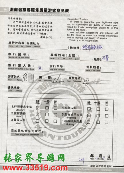2009年11月11日顧先生一行8人旅游接待質(zhì)量反饋單: