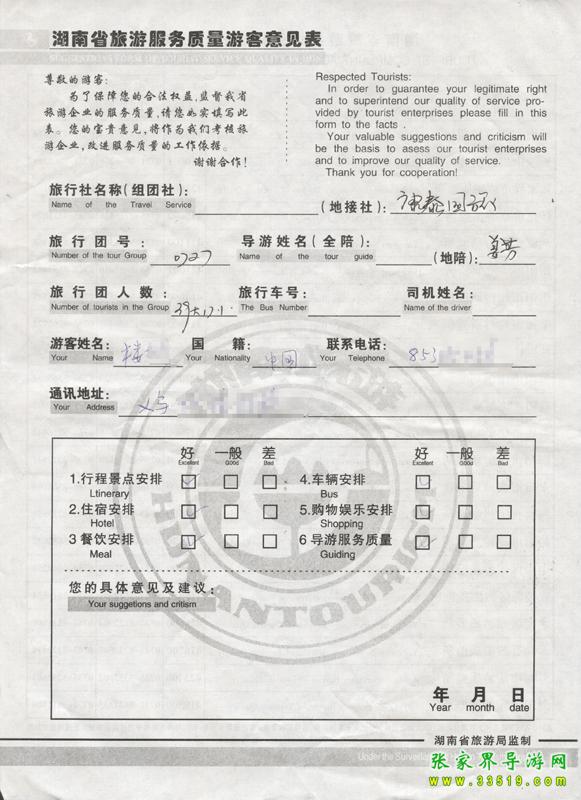 2009年7月27日義烏樓先生一行56人接待質(zhì)量反饋單: