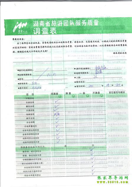 2011年9月30日謝先生一行2人旅游質(zhì)量反饋