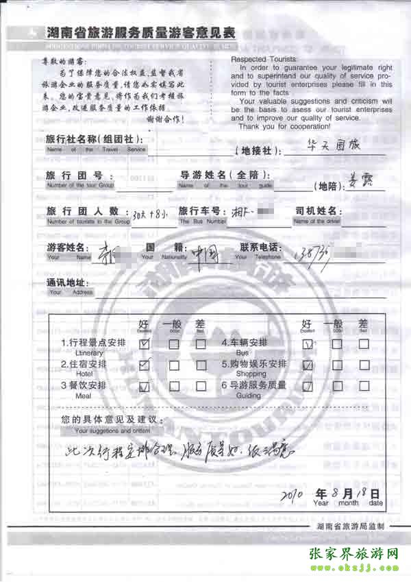 2010年8月18日李先生一行30位旅游質(zhì)量反饋:此次行程安排合理,服務(wù)質(zhì)量好,很滿意