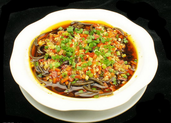“蕨根粉”的樣子看上去就是黑色的粉絲,它是從野生蕨菜的根里提煉出來(lái)的淀粉類做成的粉絲食品。因?yàn)檗Р说母亲仙?,所以做出的粉絲也就成了“黑粉絲”。蕨根粉保留了蕨菜根里大部分營(yíng)養(yǎng)(涼粉、粉絲營(yíng)養(yǎng)與原料比損失的多且豆粉的不易消化),而“蕨根”對(duì)人體的保健作用是根莖類食物里名列前茅的,這也是符合顏色越深的,營(yíng)養(yǎng)越高規(guī)律的又一個(gè)例子。